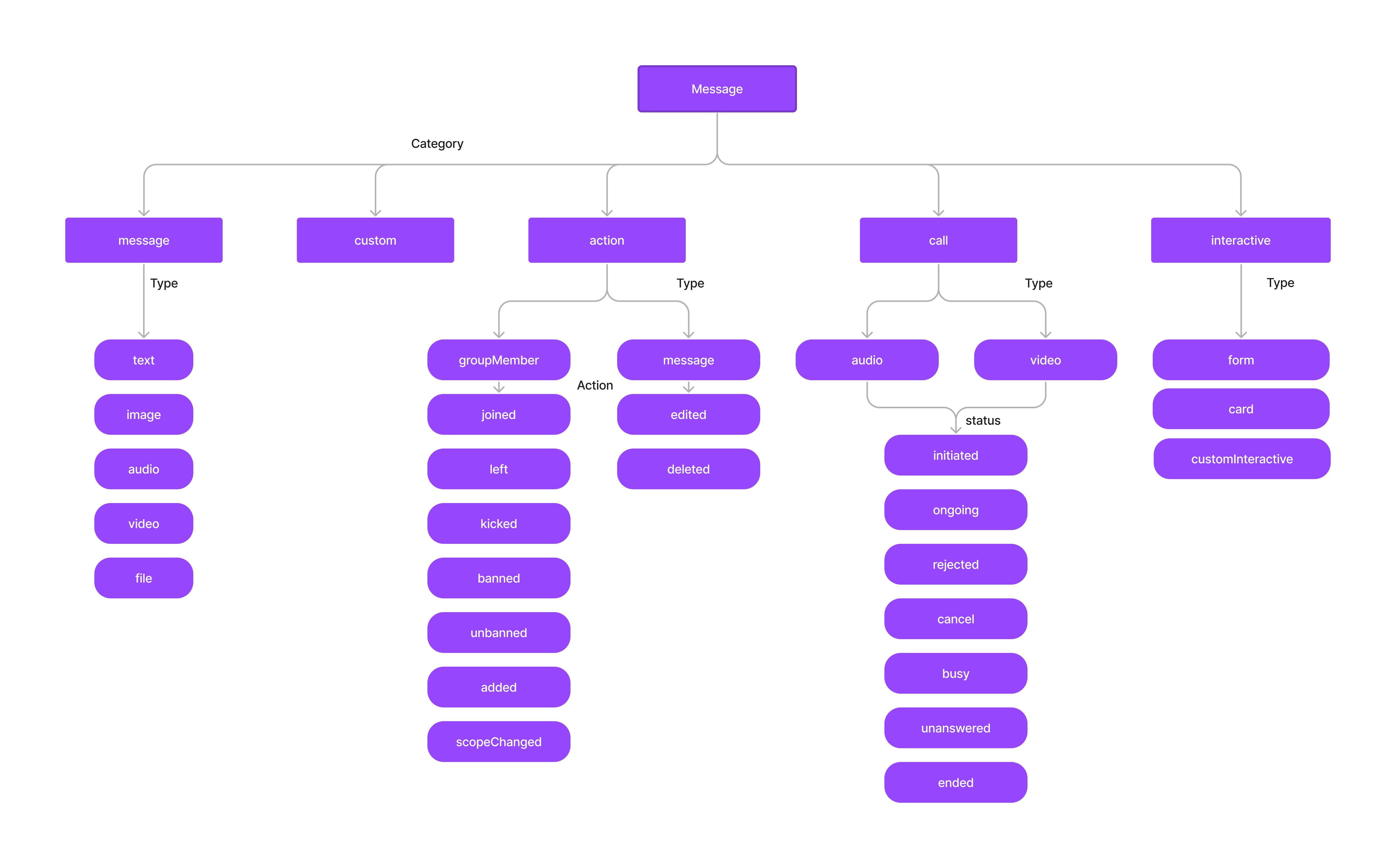 A message belonging to the categorymessage can be classified into either 1 of the below types: