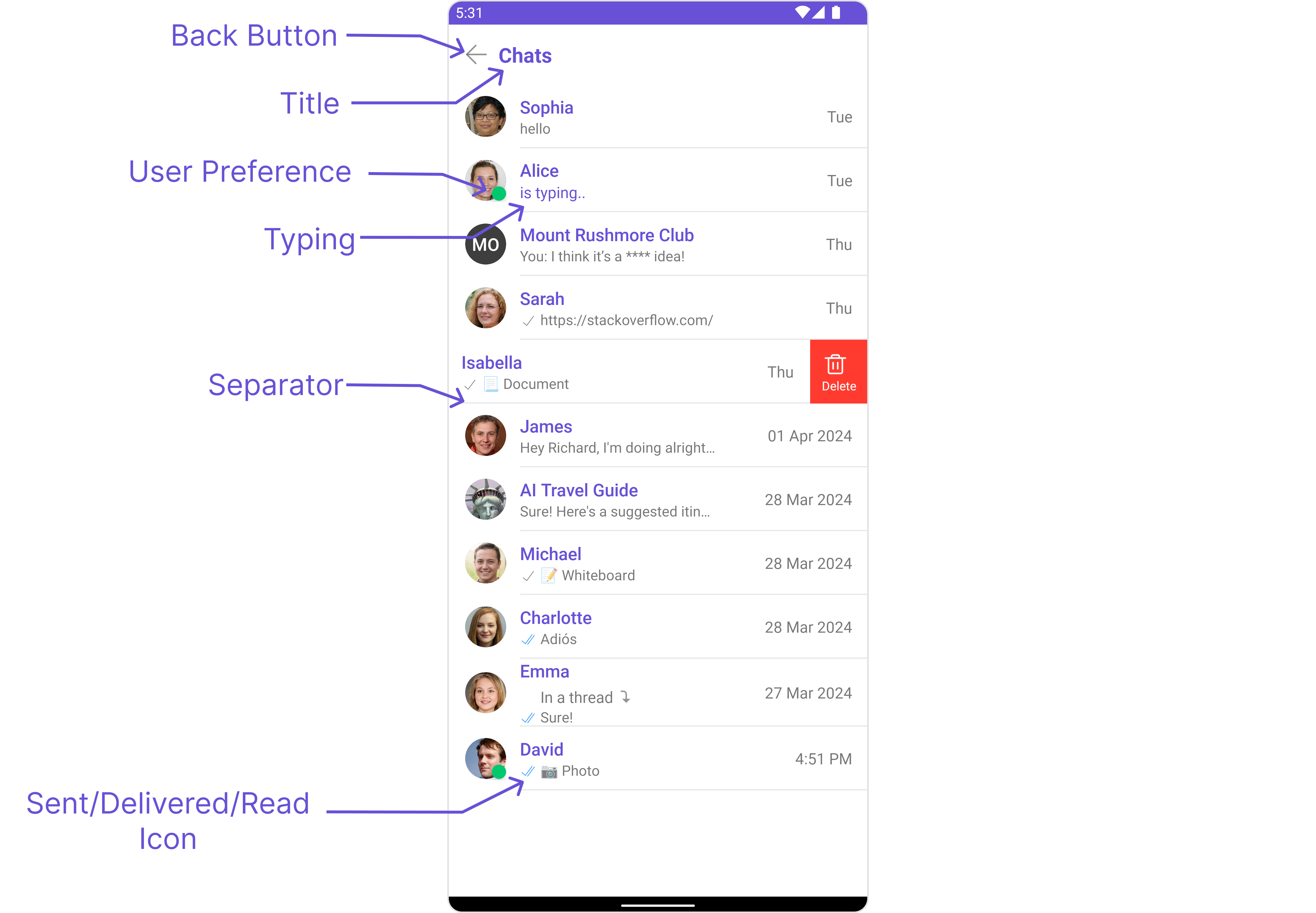 To fit your app’s design requirements, you can customize the appearance of the conversation component. We provide exposed methods that allow you to modify the experience and behavior according to your specific needs.
