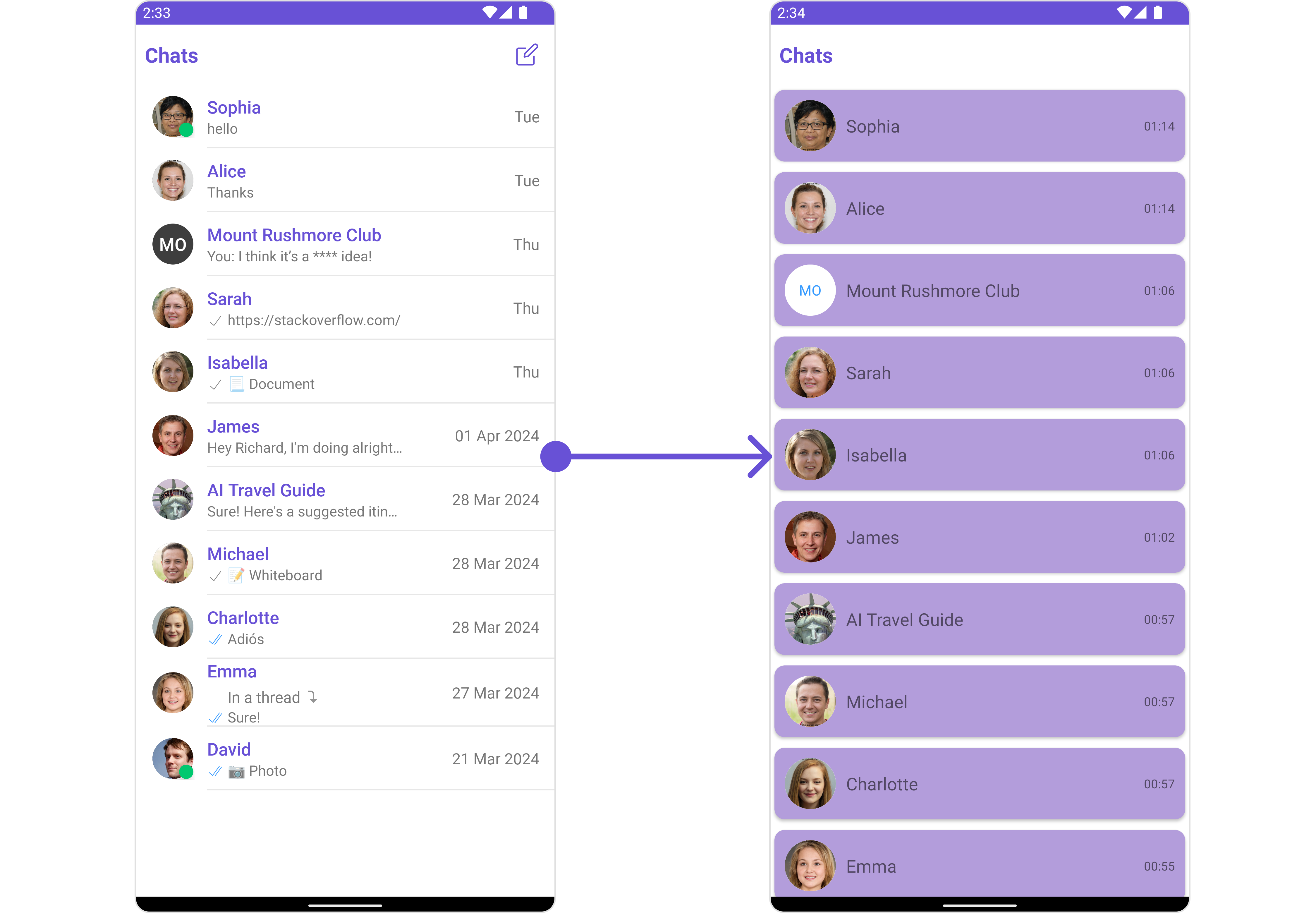 Separator ColorUsed to set the color of the divider separating the group member itemssetSeparatorColor(@color int)