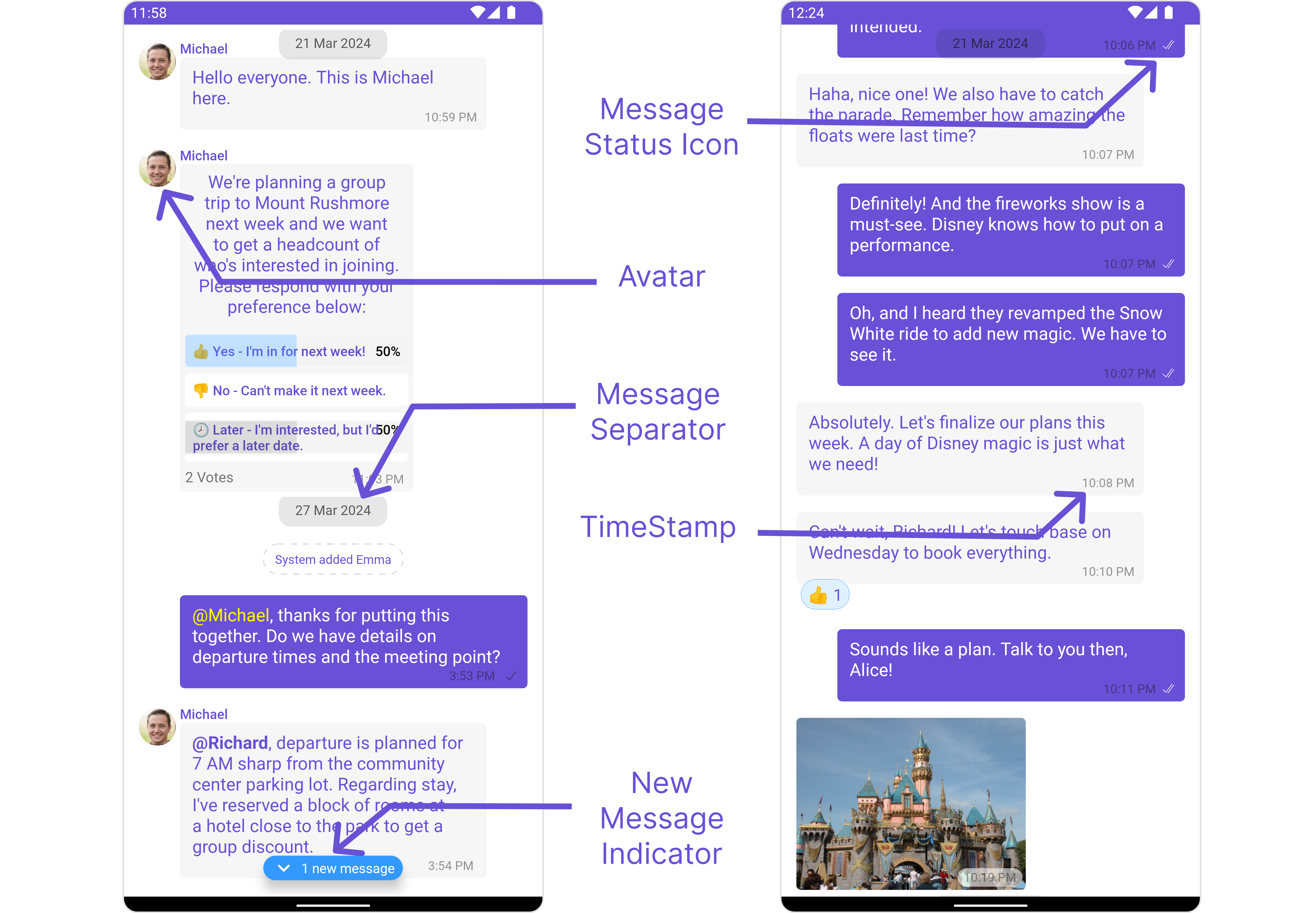 Messages Alignmentused to set the alignmet of messages in CometChatMessageList. It can be either leftAligned or standard.setAlignment(UIKitConstants.MessageListAlignment);