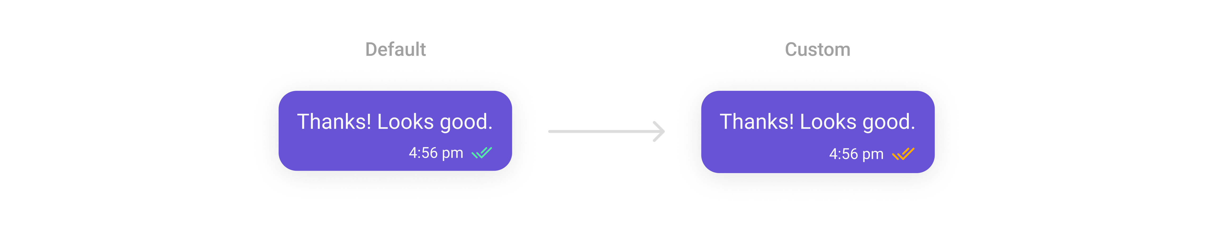 The CometChatReceipts Component indicates message delivery and read statuses using intuitive icons. These can be styled for icon size, tint, and alignment, ensuring they remain clear and consistent with your app’s UI.