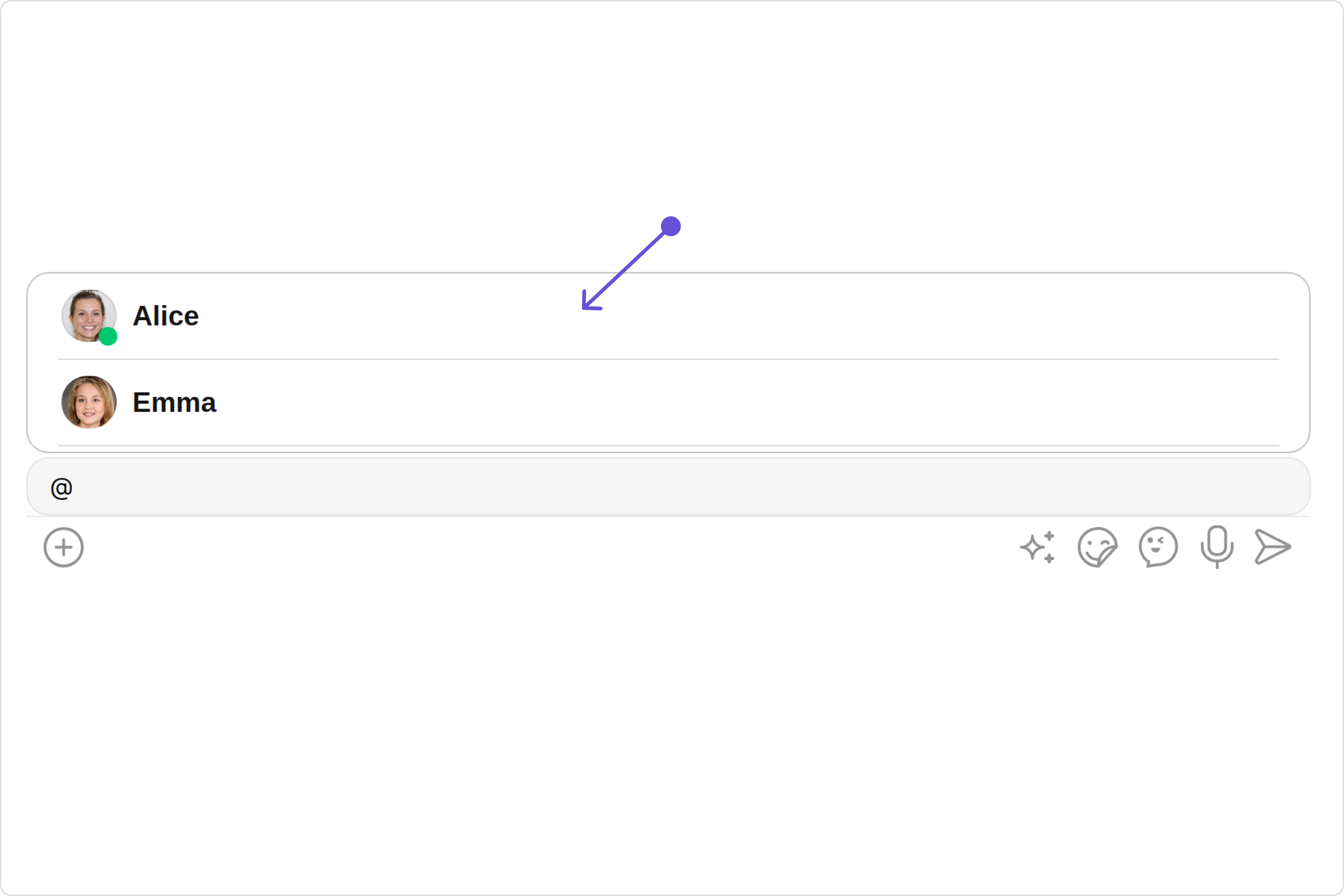 userPresencePlacementdetermines the position where the user presence indicator is displayed relative to the user’s avatar or name, with right or bottom indicating it’s displayed to the right or bottom of the user’s list.userPresencePlacement={UserPresencePlacement.right}